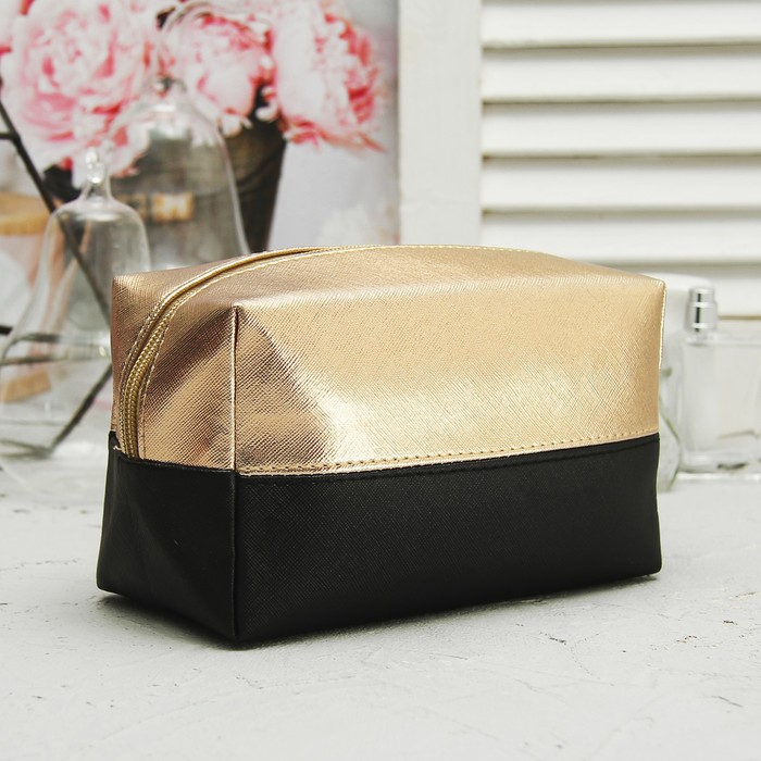 Косметичка дорожная, отдел на молнии, цвет чёрный/шампань