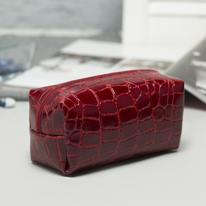Косметичка дорожная, отдел на молнии, крокодил, цвет красный
