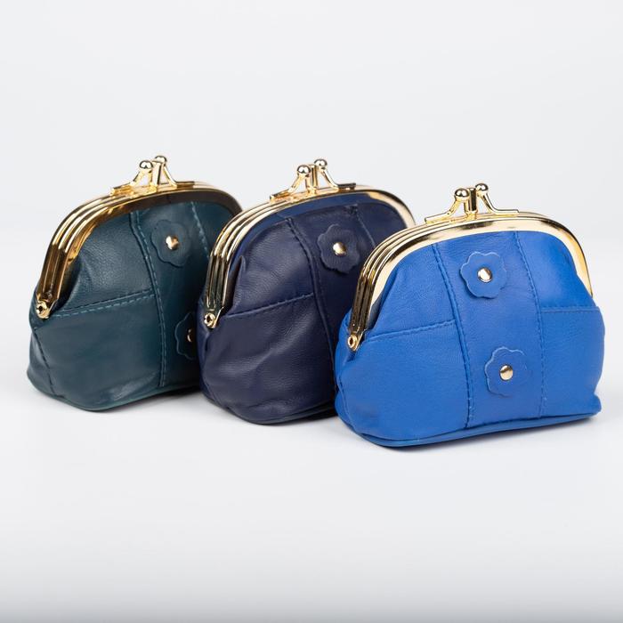 Косметичка-фермуар, натуральная кожа, 2 отдел на фермуаре, цвет синий