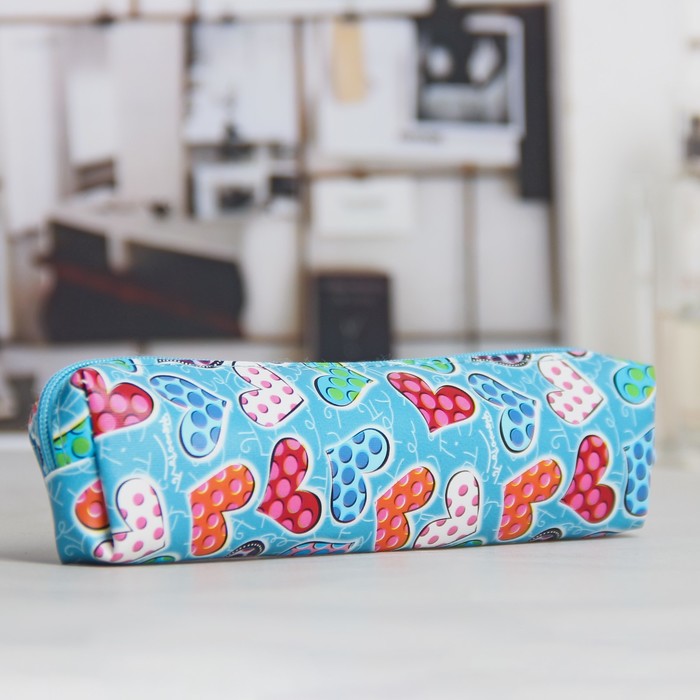 Косметичка футляр «Сердечки», отдел на молнии, цвет бирюзовый