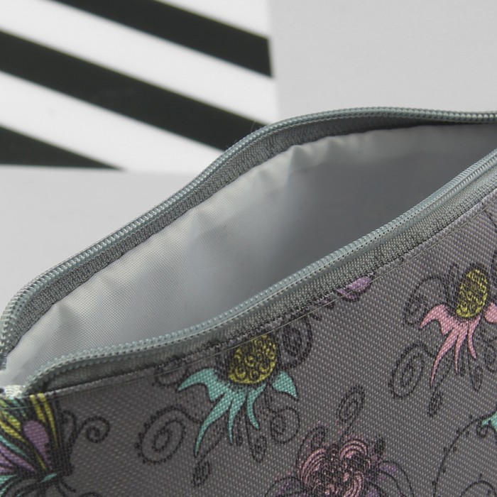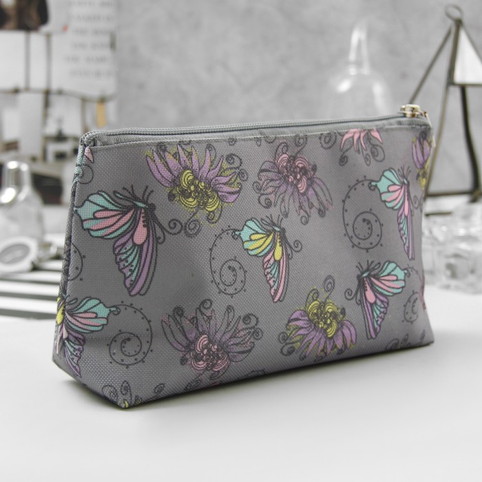 Косметичка простая «Бабочки», отдел на молнии, цвет серый