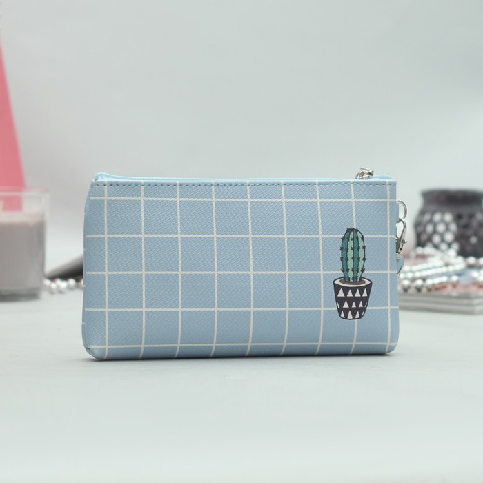 Косметичка простая «Кактусы», отдел на молнии, ручка, цвет голубой