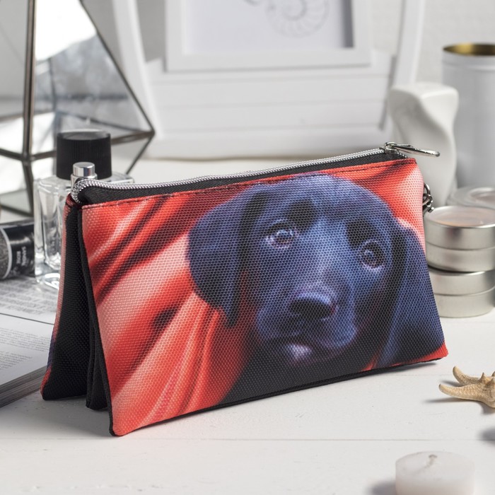 Косметичка простая «Любопытная собака», 3 отдела на молнии