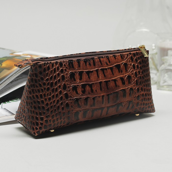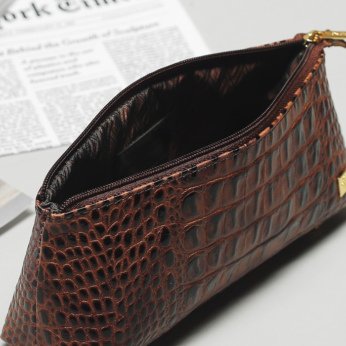 Косметичка простая на молнии, 1 отдел, цвет коричневый