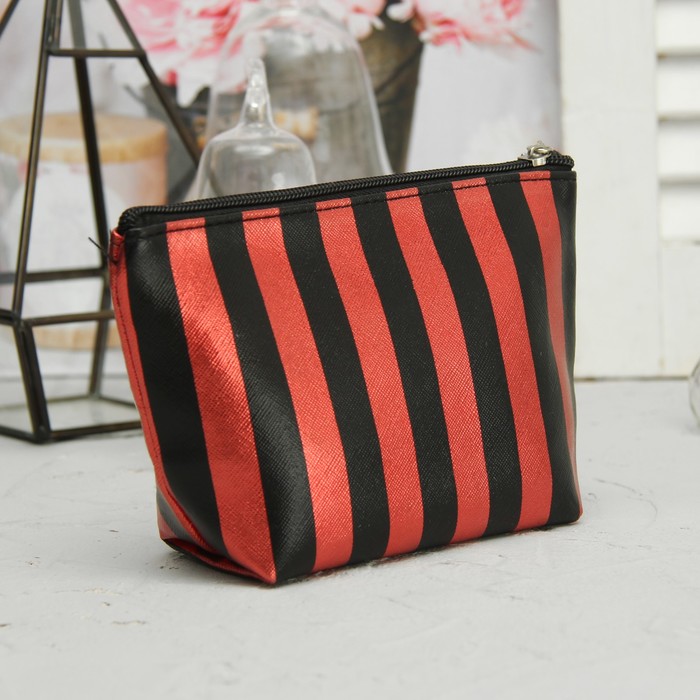 Косметичка простая, отдел на молнии, цвет чёрный/красный