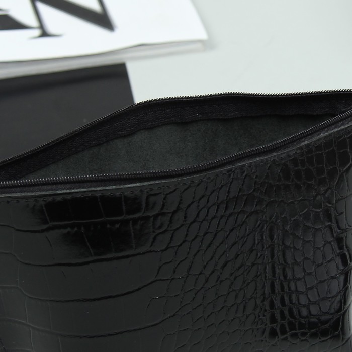 Косметичка простая, отдел на молнии, кайман/шик, цвет чёрный