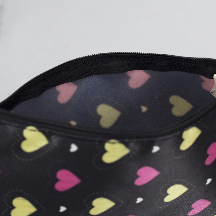 Косметичка простая "Сердца", отдел на молнии, цвет чёрный