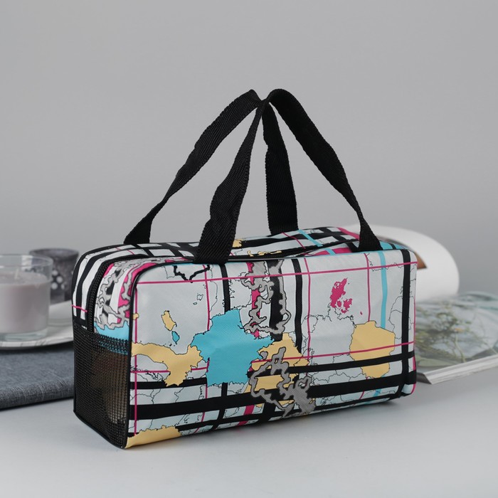 Косметичка-сумочка «Карта», отдел на молнии, ручки, цвет голубой