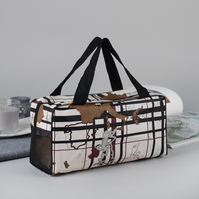 Косметичка-сумочка «Карта», отдел на молнии, ручки, цвет молочный