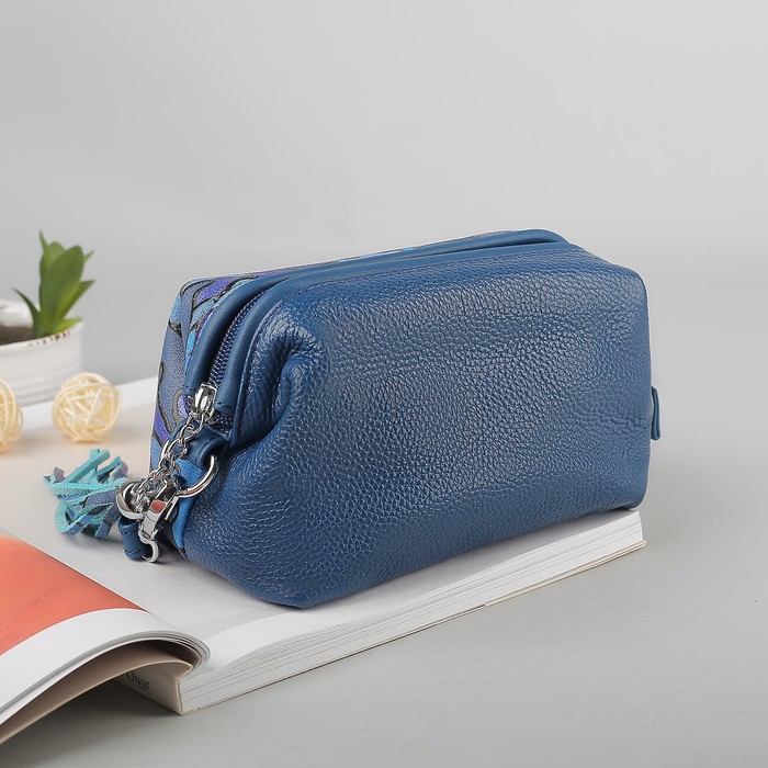 Косметичка-сумочка на молнии, с ручкой, цвет синий