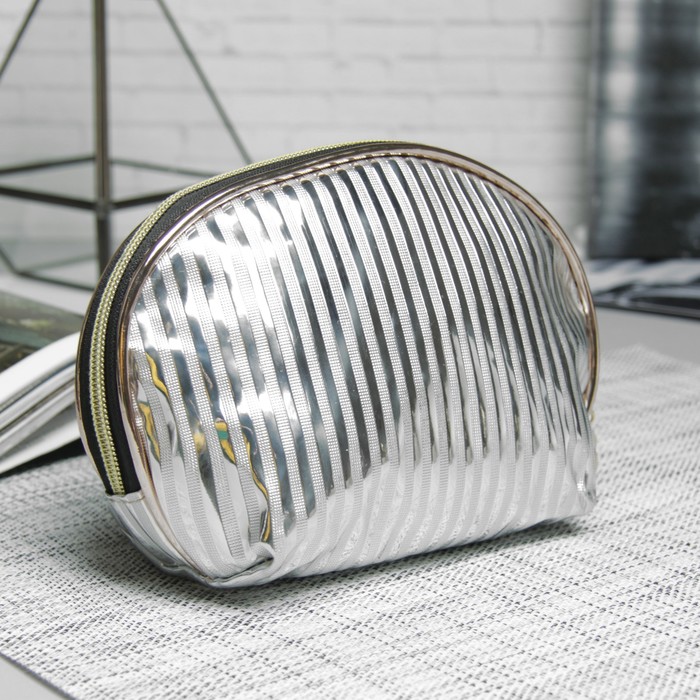 Косметичка-сумочка «Полоски», отдел на молнии, ручка, цвет серебристый