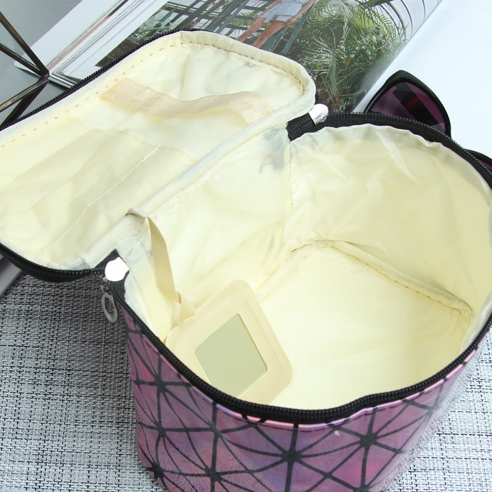 Косметичка-сундучок, отдел на молнии, зеркало, цвет розовый