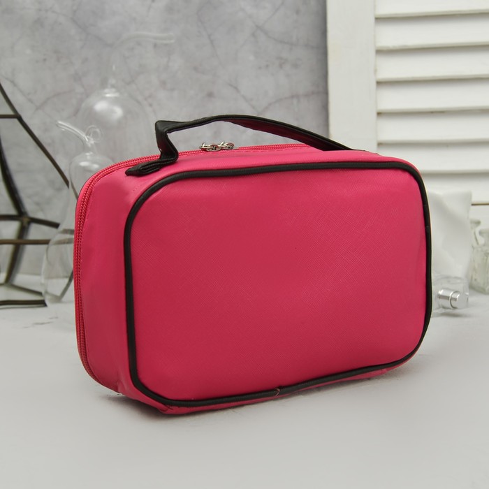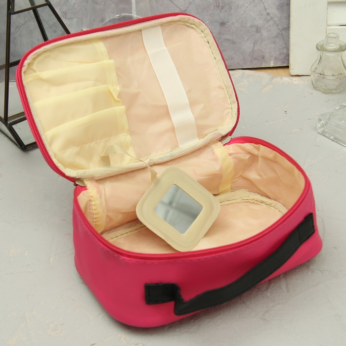 Косметичка-сундучок «Полосы» , отдел на молнии, зеркало, цвет малиновый