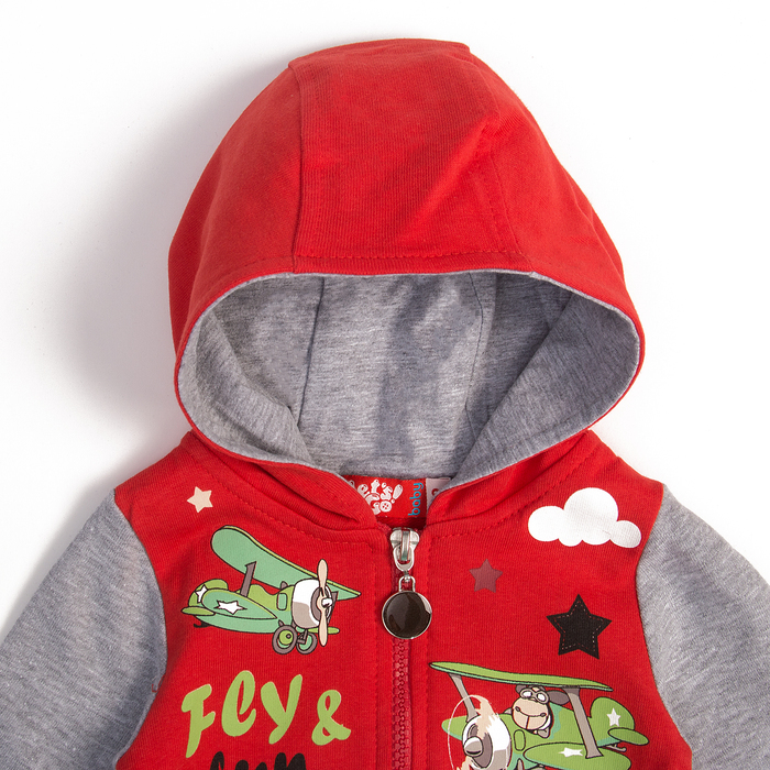 Костюм для мальчика, рост 62 см (40), цвет серый меланж / красный