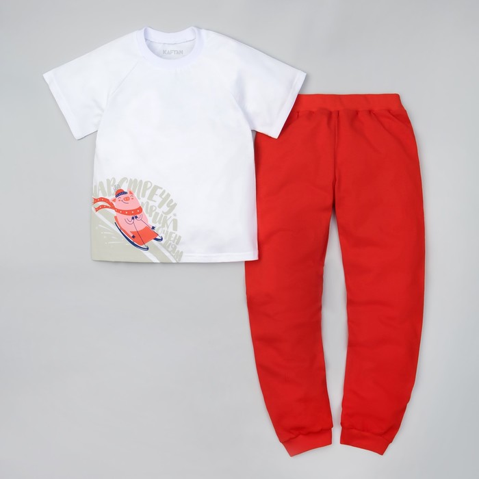 Костюм (джемпер, брюки) KAFTAN "Навстречу приключениям", бел., красный, р. 122-128 см (34)