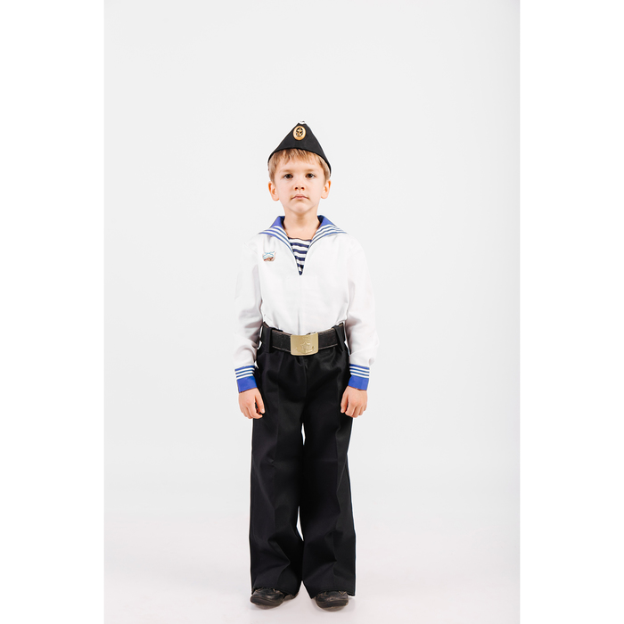 Костюм моряка: фланка, тельняшка, брюки, пилотка, ремень, рост 134 см