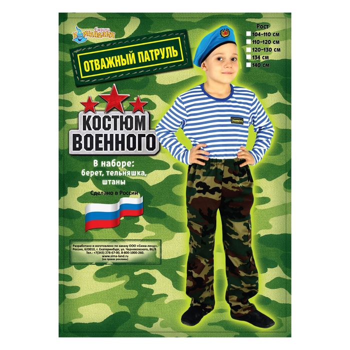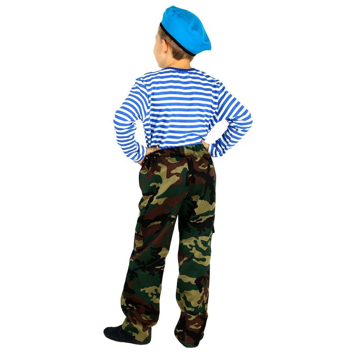 Костюм военный "КМФ с тельняшкой", рост 140 см превратит вашего ребёнка в храброго бойца, защитника Родины, который всегда на страже порядка. Такой наряд отлично подойдёт для 23 Февраля, Дня Победы, выступлений на сцене, тематических представлений или вылазки на природу. А может, «голубые береты» станут важной частью жизни юного героя? Испытайте гордость за подрастающего патриота!