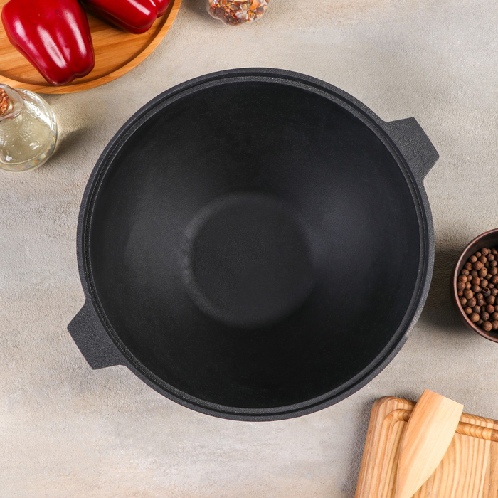 Котёл из чугуна – идеальная посуда для загородного похода. Прочная посуда традиционной формы пригодится для отваривания и тушения блюд из мяса, рыбы и овощей. Готовить можно прямо на костре или мангале. Благодаря большому объёму угощения хватит на всех!