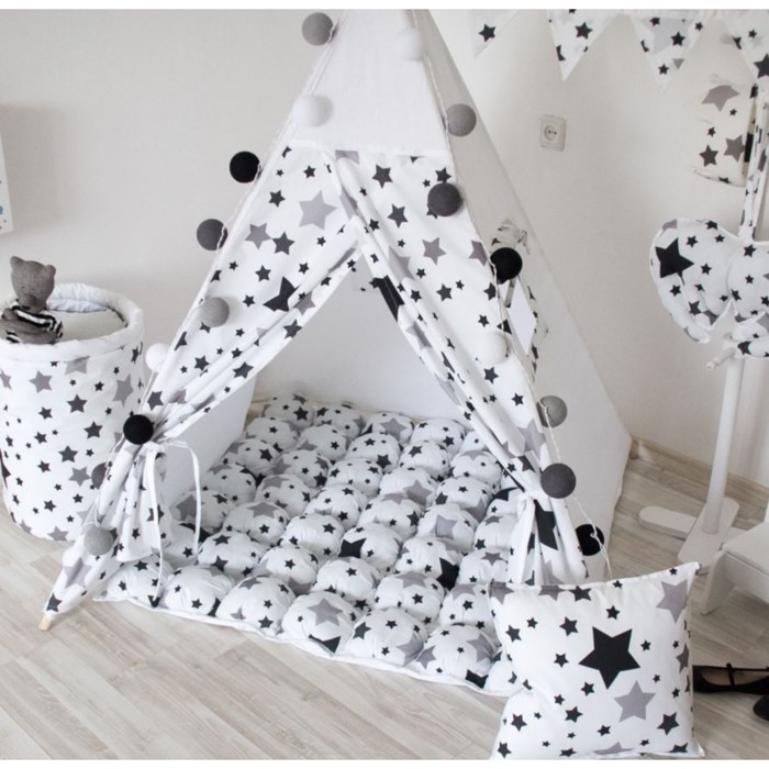 Коврик Бомбон для вигвама, чёрные звезды