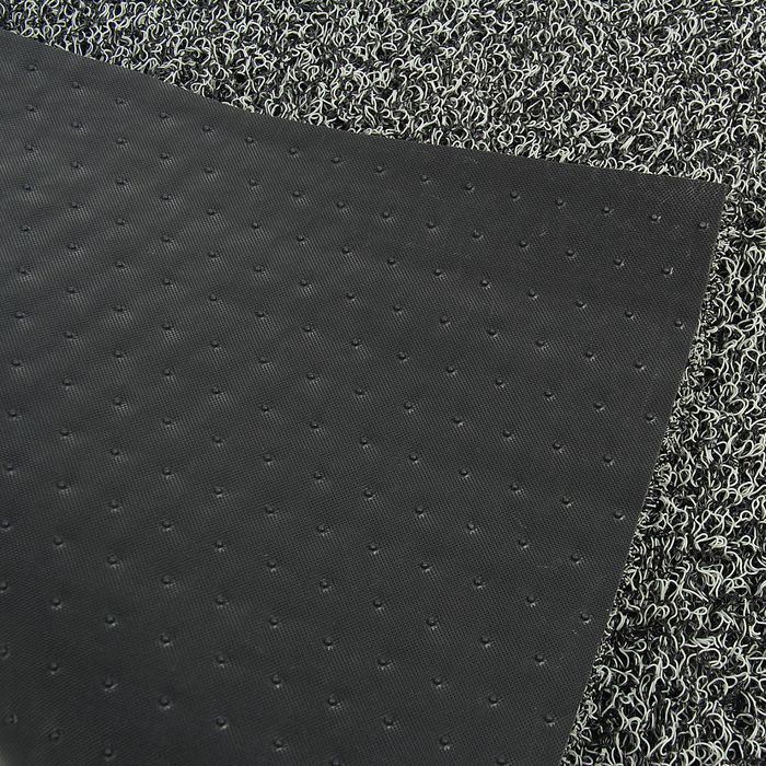 Материал изделия сохранит эстетичный и опрятный вид в любых погодных условиях. Поверхность изготовлена из сплава синтетических нитей, которые собирают грязь с подошвы обуви и прочно удерживают её внутри. Нижняя часть ковра выполнена из ПВХ (поливинилхлорида) — высококачественного заменителя каучука, обладает повышенной износостойкостью. Перфорация на обратной стороне препятствует скольжению внутри салона.