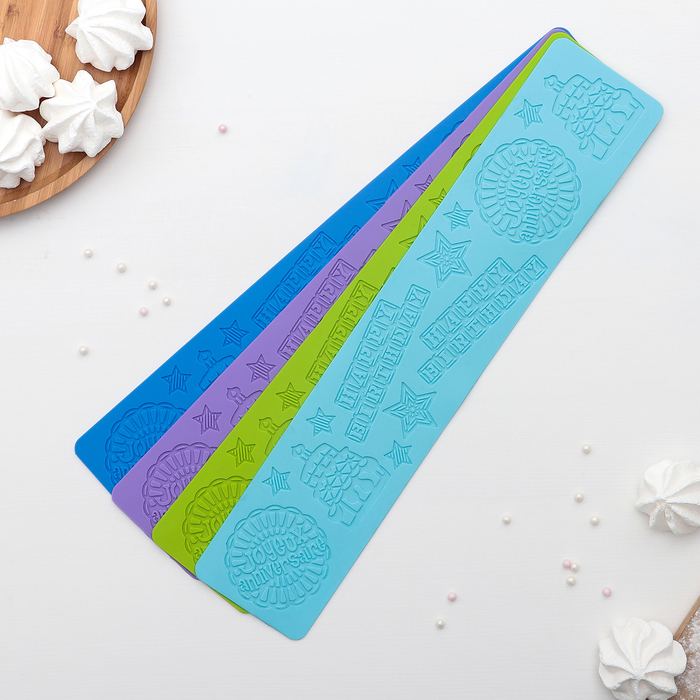 Коврик для айсинга 38,5х8 см "Happy Birthday", цвета МИКС