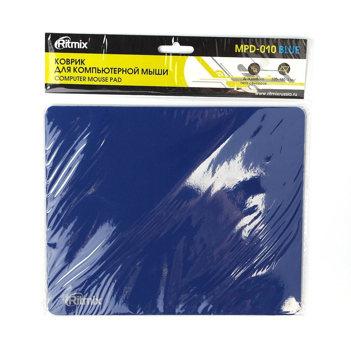 Коврик для мыши RITMIX MPD-010, 220x180x3 мм, синий — аксессуар для вашего стола, который сохраняет поверхность гладкой и защищает её от царапин. Он обеспечивает точность в работе с мышкой и делает перемещение курсора более динамичным.