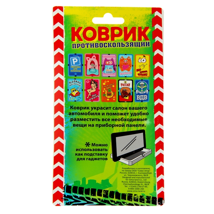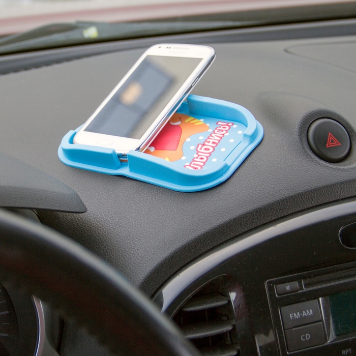 Одной стороной коврик крепится на поверхность, например, на панель автомобиля и плотно закрепляется там за счет особого состава материала. Другая сторона удерживает, всё, что вам необходимо иметь под рукой. Чтобы не отвлекаться от вождения в поисках мобильного телефона, прикрепите его на коврик, и вы значительно снизите риск аварийных ситуаций. Более того, аксессуар имеет специальные бортики с выемками, предназначенные для использования в качестве подставки для различных гаджетов.