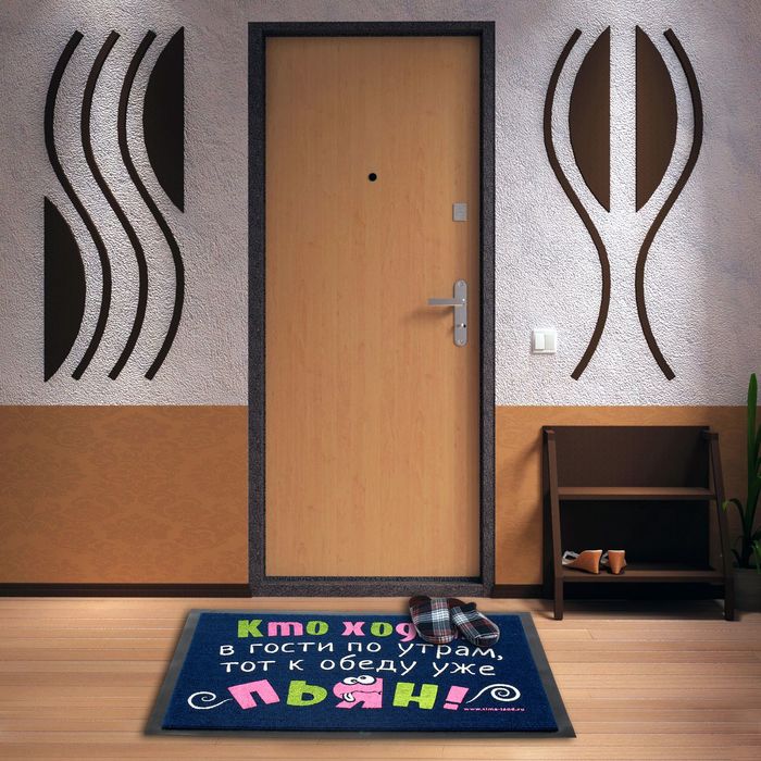 Вы с юмором относитесь ко всему, что вас окружает? Тогда придверный коврик с броской, лаконичной надписью и уникальным дизайном - то, что вам нужно! Выполненный из качественный материалов, он не только станет полезным приобретение для создания уюта и комфорта в вашем доме, но также будет дарить вам положительные эмоции каждый раз, когда вы будете переступать через порог.