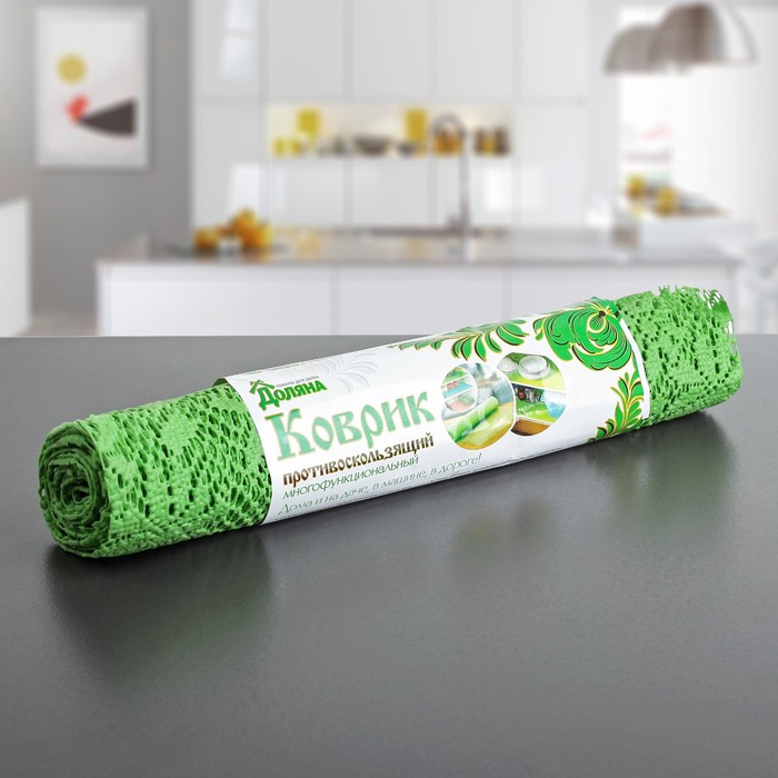 Коврик противоскользящий "Цветы" 30х150 см, цвет зеленый