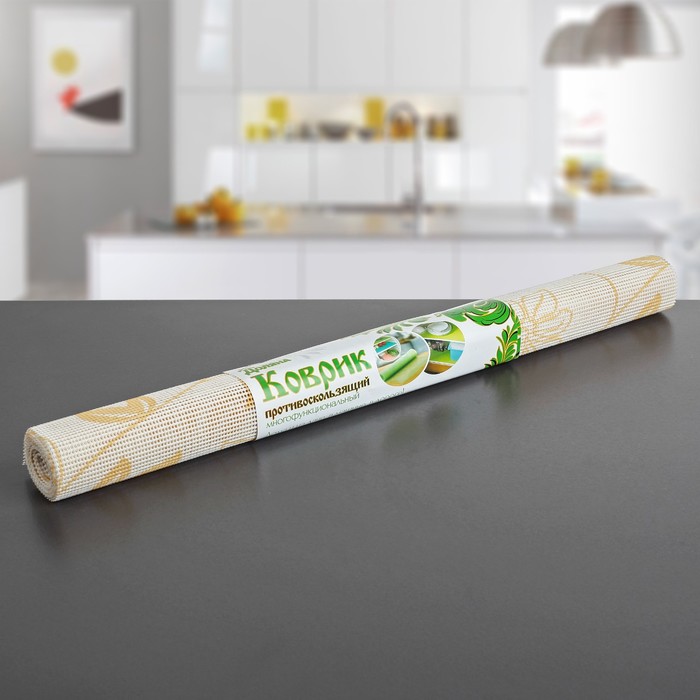 Коврик противоскользящий "Вьющиеся цветы" 45х100 см, цвет белый
