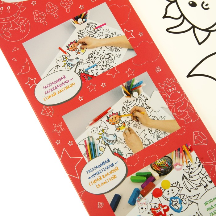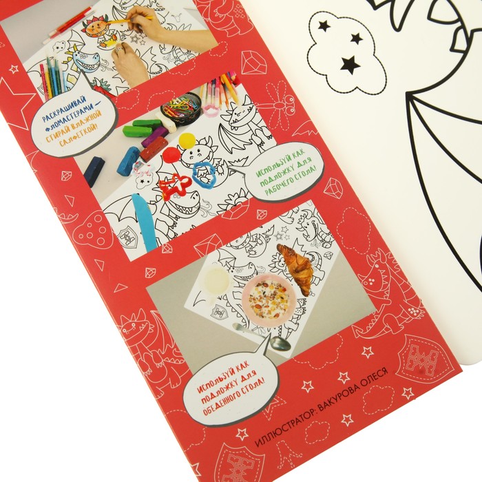 Коврик-раскраска многоразовый "Дракончики" 48 х 34 см