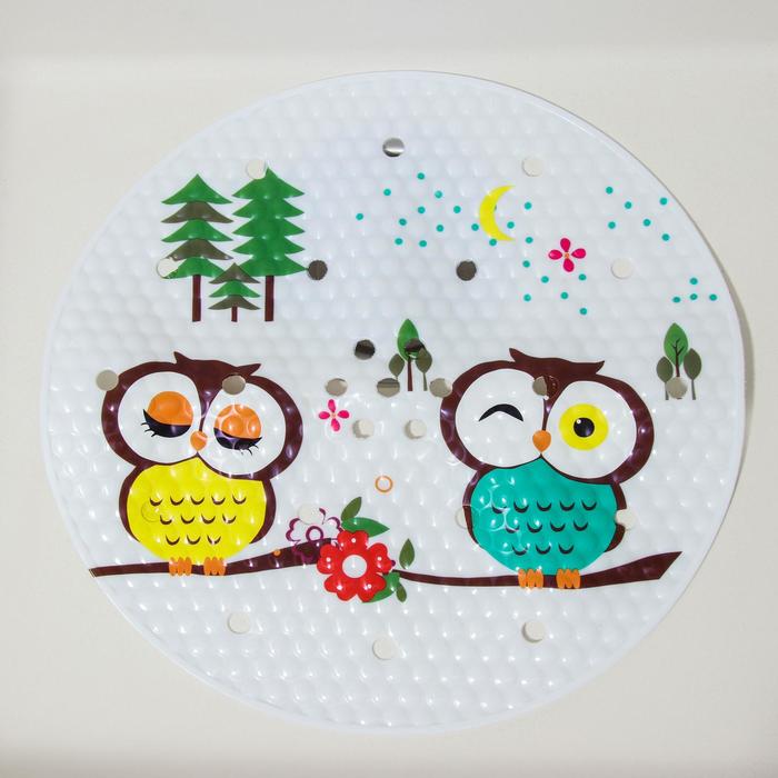 Коврик в раковину "Совушки" 29х29 см, круглый, цвет МИКС