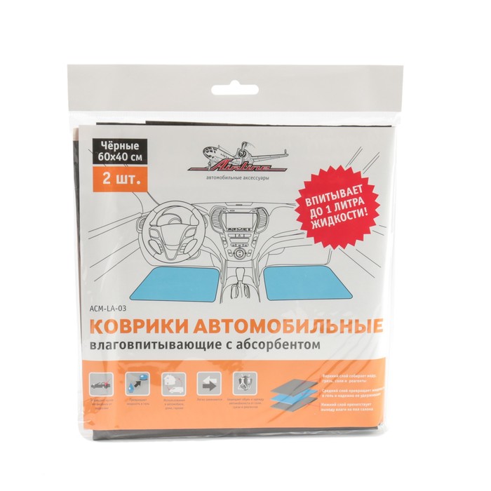 Поддерживать порядок в салоне транспортного средства вам помогут коврики автомобильные влаговпитывающие, черные, 60*40 см., 2шт.Airline ACM-LA-03.