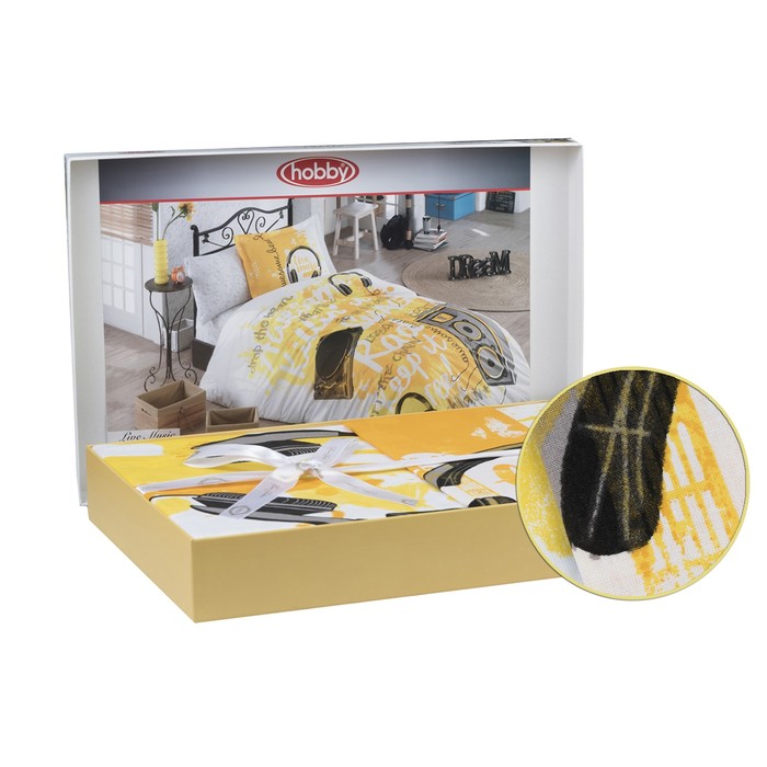 КПБ Live Music 1,5 сп., 160х240 см, 160х220 см, 50х70 см, 70х70 см по 1 шт., жёлтый