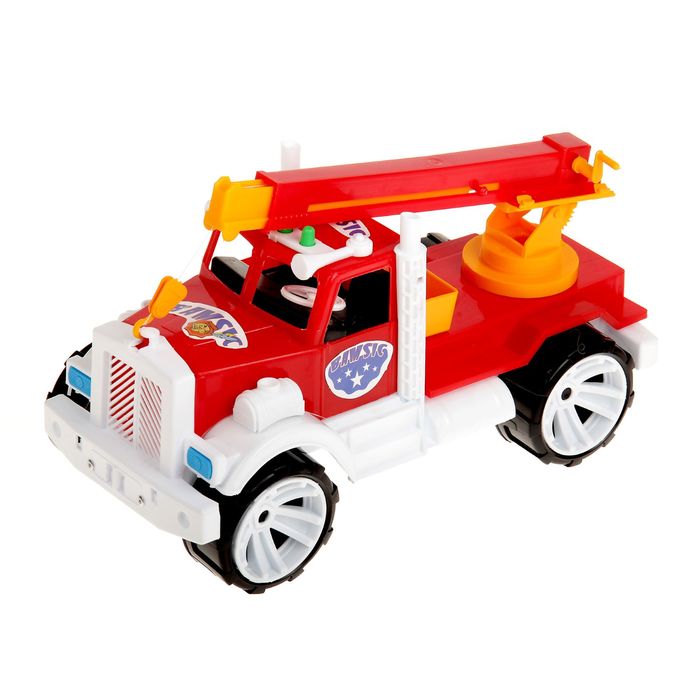 Автокран ТМ Bamsic порадует всех юных грузчиков и строителей. Он оснащён вращающейся на 360° платформой с выдвижной телескопической стрелой. На самом её конце располагается крюк с тросом, длину которого можно регулировать с помощью лебёдки. А большим колёсам с глубоким рисунком протектора будут не страшны любые препятствия.