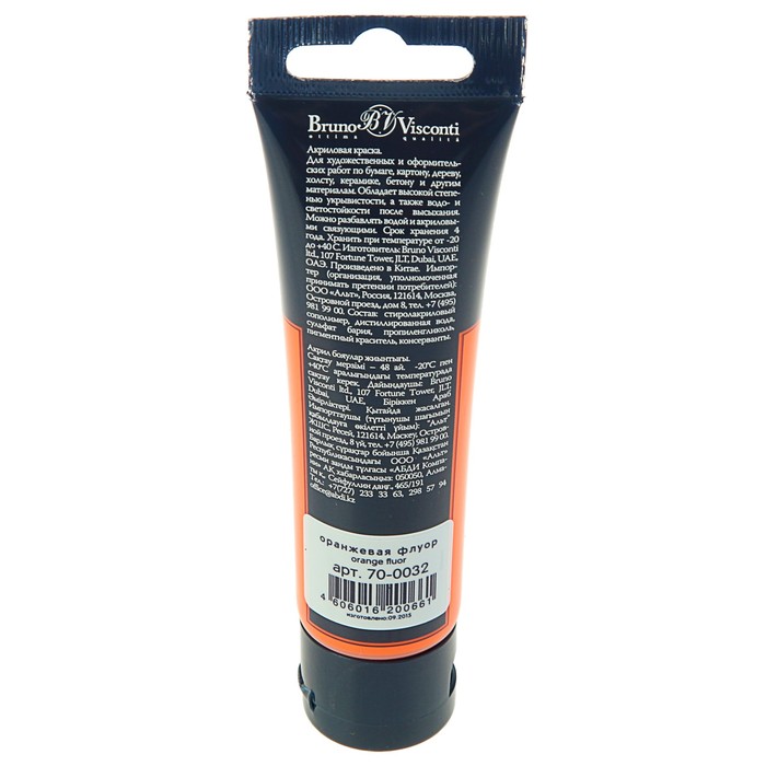 Краска акриловая Fluo туба 60 мл Bruno Visconti морозостойкие Оранжевая флуоресцентная снимет все ограничения с вашего творчества и поможет реализовать любые задумки! Благодаря удобной упаковке её можно как использовать дома, так и взять на улицу, а это откроет новые горизонты для любого художника.