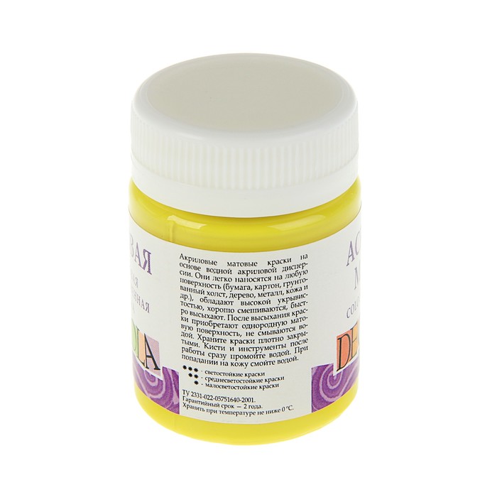 Краска акриловая Matt 50 мл ЗКХ Decola матовая 14328214 Лимонная снимет все ограничения с вашего творчества и поможет реализовать любые задумки! Благодаря удобной упаковке её можно как использовать дома, так и взять на улицу, а это откроет новые горизонты для любого художника.