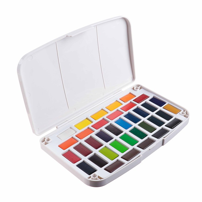 Краски акварелные 36цв Профессиональные вдохновит вас на создание новых картин. Цвет хорошо ложится на бумагу и позволяет претворить все задумки в жизнь. Благодаря удобной упаковке краску легко переносить, и это делает её незаменимой для настоящего художника.