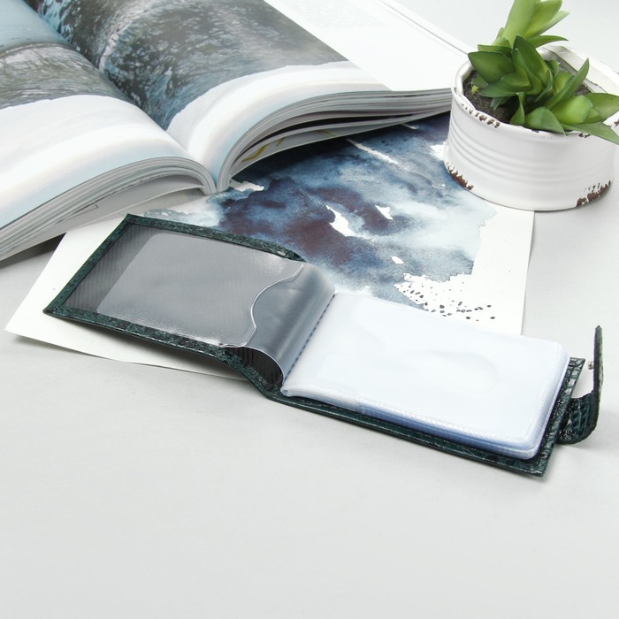 Кредитница горизонтальная, 1 ряд, 18 листов, хлястик/крокодил, цвет зелёный