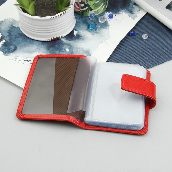 Кредитница, на кнопке, 18 листов, ладья, цвет алый матовый