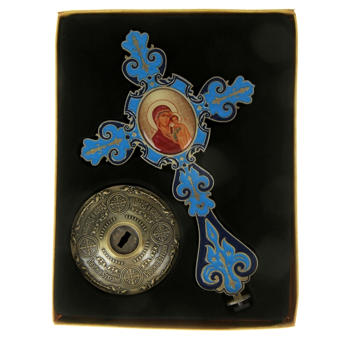 Крест на подставке с иконой "Икона Казанской Божьей Матери" выполнен из высококачественного сплава с цветной заливкой и ажурным узором. На обратной стороне имеется надпись "Спаси и сохрани", такая же надпись и на подставке бронзового цвета. По центру креста находится икона со смоляным слоем. Изображенный образ полностью соответствует канонам Православной Церкви. Сам крест разбирается и его удобно траспортировать. Упакован в оригинальную коробку и выглядит по-настоящему богато, будет прекрасным подарком с духовной составляющей.