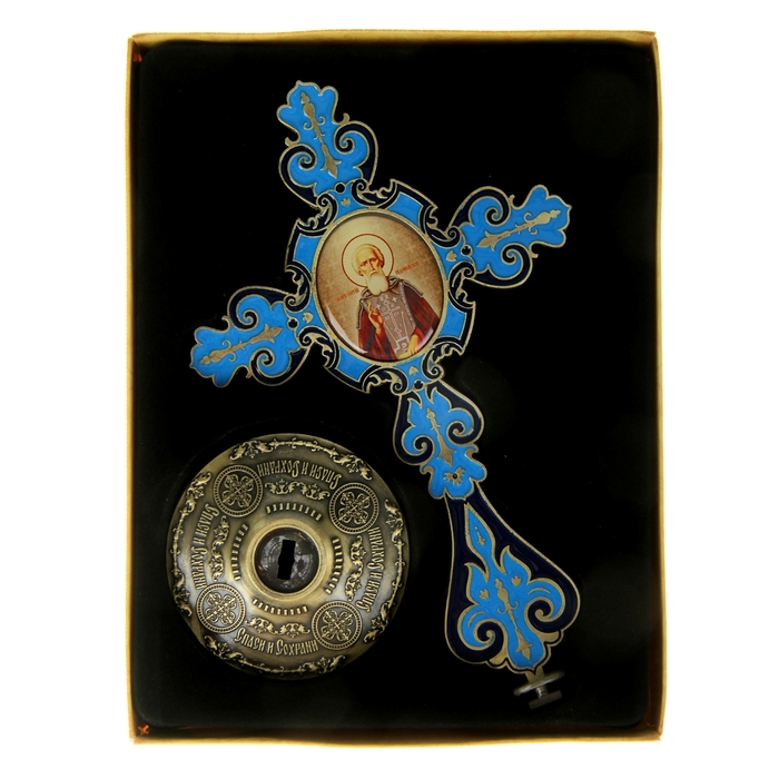 Крест на подставке с иконой "Преподобный Сергий Радонежский" выполнен из высококачественного сплава с цветной заливкой и ажурным узором. На обратной стороне имеется надпись "Спаси и сохрани", такая же надпись и на подставке бронзового цвета. По центру креста находится икона со смоляным слоем. Изображенный образ полностью соответствует канонам Православной Церкви. Сам крест разбирается и его удобно траспортировать. Упакован в оригинальную коробку и выглядит по-настоящему богато, будет прекрасным подарком с духовной составляющей.