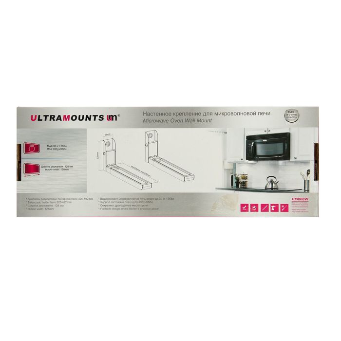 Кронштейн Ultramounts UM888W позволит сэкономить пространство и разместить микроволновую печь на стене. Конструкция выдерживает вес до 30 кг. Приспособление станет альтернативой громоздким тумбам и подставкам под технику.
