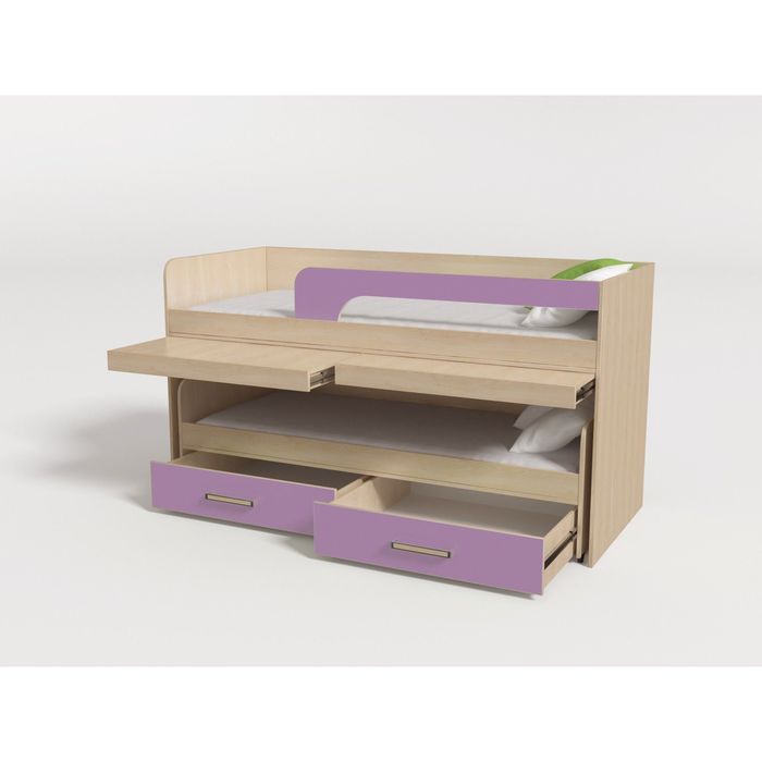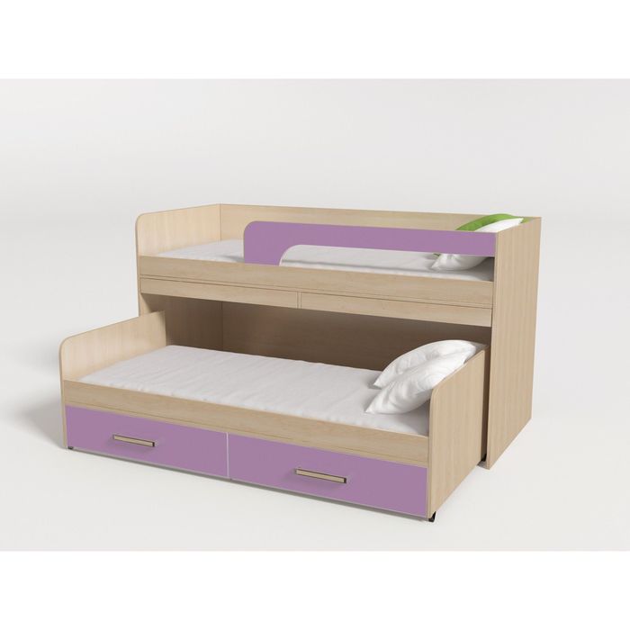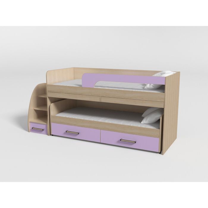 Кровать 2-ярусная №11, дуб молочный/лиловый, с матрасами