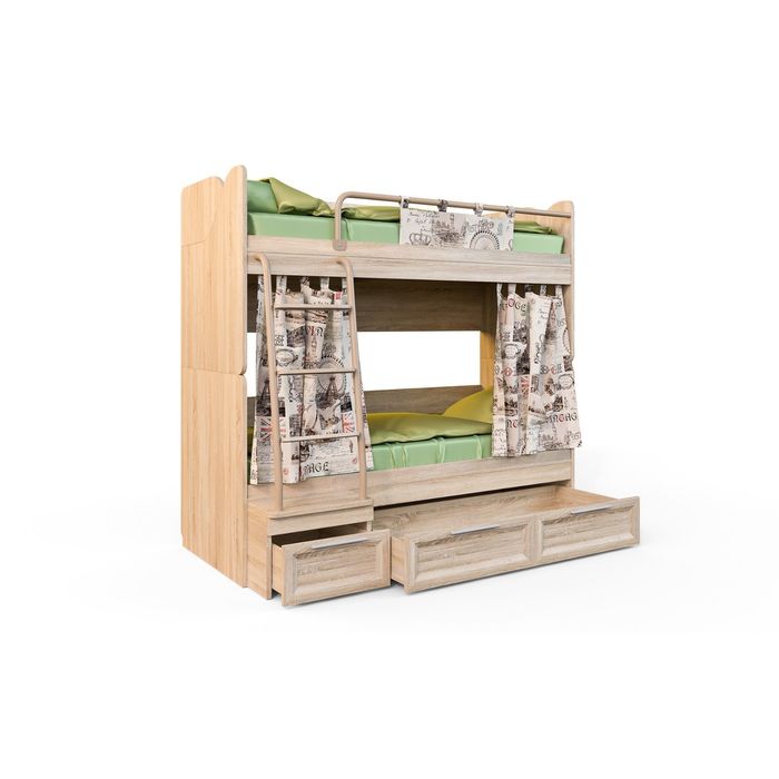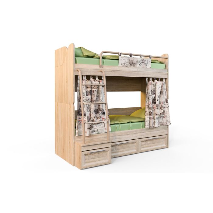 Кровать оснащена безопасными бортиками и вместительными ящиками. Дополнительно комплектуется большими занавесками.