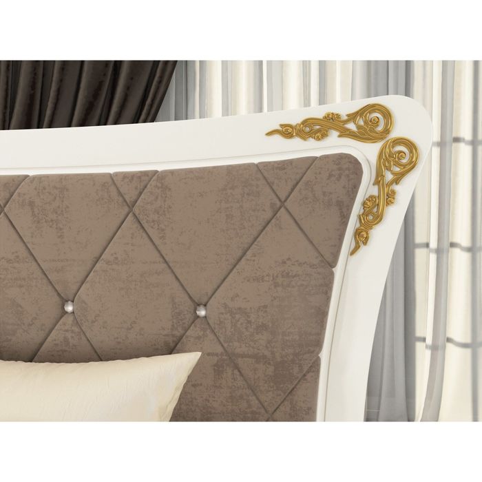Кровать с мягкой спинкой «Аделина», белый глянец / золото