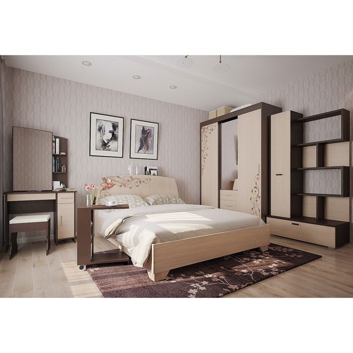 Кровать подойдёт для любого интерьера квартиры. Данная модель состоит из ортопедического основания, которое способствует здоровому сну. За спинкой расположены полки для книг, телефона и других мелочей. Изделие изготовлено из ЛДСП, каркас выполнен из металла, а по краям имеет ПВХ-кромку.