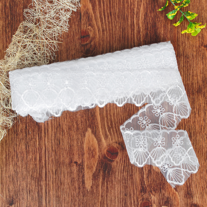 Кружево "Ракушки", органза, ширина 50мм, 14±1м, цвет белый