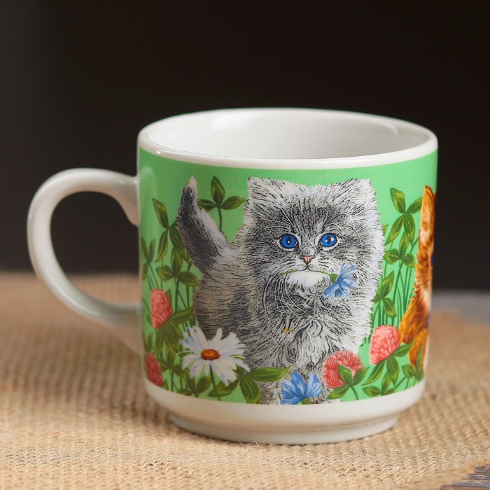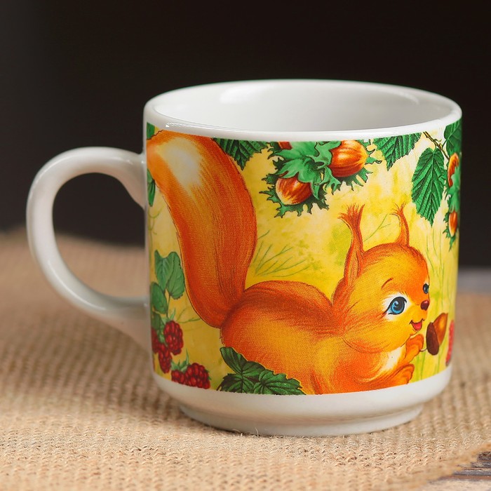 Кружка 220 мл "Цилиндр", зверята, деколь, микс