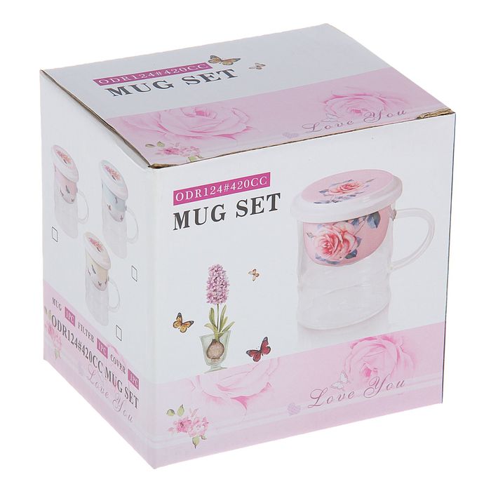 Кружка 350 мл "Нежная роза", с крышкой и керамическим ситом, цвета МИКС